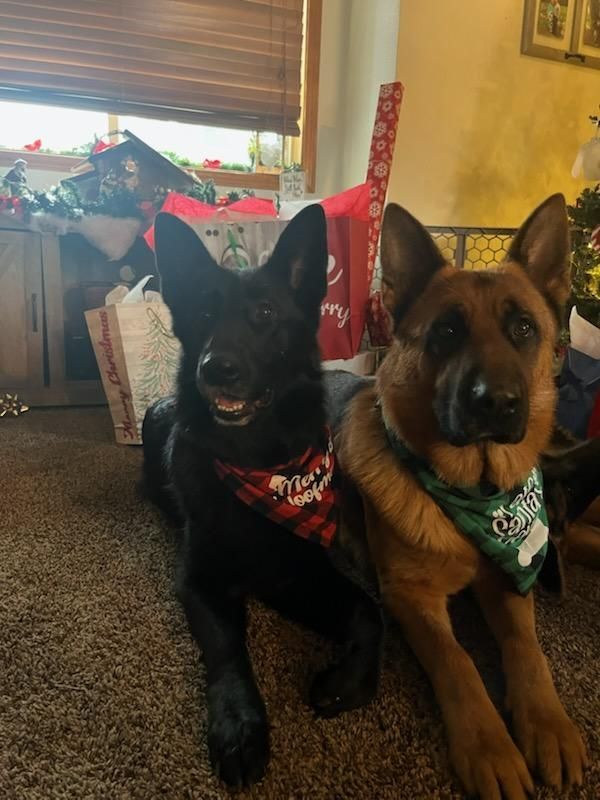 Zova, is a magnificent black German Shepherd, who comes from a truly exceptional line of champion German Shepherds! Her mother, SG Ema de Panait, is a beautiful import with a fantastic temperament and an impressive pedigree, including VA2 Odin von Bischof Metzger. Zova's dad, Sg X’Optimus de Eldorado, is a stunning, imported, black long coat German Shepherd. His rare color and long coat, extending to his paws, make him unique. He's a large, muscular dog with a masculine head, standing just over 64cm tall and weighing 90 lbs. Optimus is friendly, eager to please, and has won numerous show titles, including "Champion of Montenegro" in 2022. His hips and elbows are certified normal, and he is DM-clear.